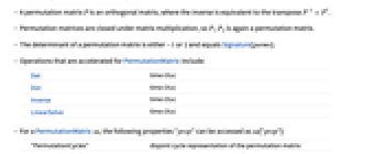or 1 and equals Signature[permv]. - Operations that are accelerated for PermutationMatrix include: