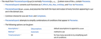 - PiecewiseExpand attempts to simplify combinations of conditions that appear in Piecewise.