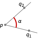 - Two half‐lines from p through q1 and q2 delimit two angles α1 and α2 at p.
