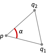 - The triangle with vertex points q1, p and q2 defines three angles α1, α2 and α3 at p.