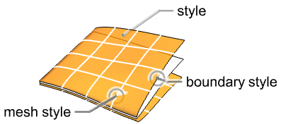 "Style" Automatic style for the fit surface "MeshStyle" Automatic style for surface mesh curves "BoundaryStyle" Automatic style for surface boundaries