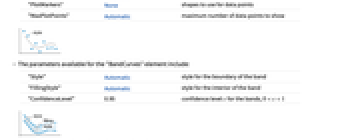 "Style" Automatic style for the boundary of the band "PlotMarkers" None shapes to use for data points "MaxPlotPoints" Automatic maximum number of data points to show - The parameters available for the "BandCurves" element include: