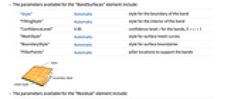 "MeshStyle" Automatic style for surface mesh curves "BoundaryStyle" Automatic style for surface boundaries "PillarPoints" Automatic pillar locations to support the bands - The parameters available for the "Residual" element include: