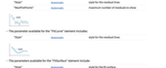 "Style" Automatic style for the residual lines "MaxPlotPoints" Automatic maximum number of residuals to show - The parameter available for the "FitCurve" element includes: