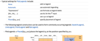 - PlotLegendsPlaced[leg,pos] places the legend leg at the position specified by pos.