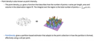 . - PointDensity gives a partition-based estimator that adapts to the point collection in how the partition is formed, effectively using a cell per point.