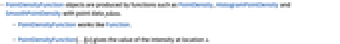 - PointDensityFunction objects are produced by functions such as PointDensity, HistogramPointDensity and SmoothPointDensity with point data pdata.