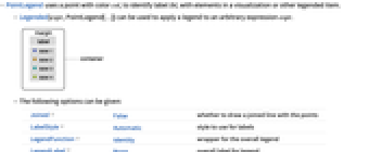 - Legended[expr,PointLegend[…]] can be used to apply a legend to an arbitrary expression expr.