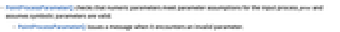 - PointProcessParameterQ checks that numeric parameters meet parameter assumptions for the input process proc and assumes symbolic parameters are valid.