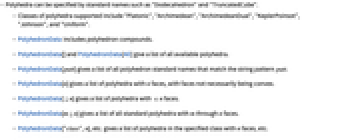 - Polyhedra can be specified by standard names such as "Dodecahedron" and "TruncatedCube".