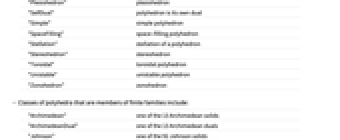- Classes of polyhedra include: