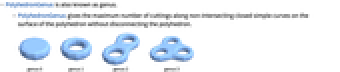 - PolyhedronGenus gives the maximum number of cuttings along non-intersecting closed simple curves on the surface of the polyhedron without disconnecting the polyhedron.
