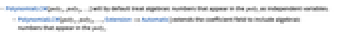 - PolynomialLCM[poly1,poly2,…] will by default treat algebraic numbers that appear in the polyi as independent variables.