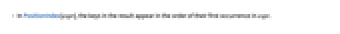 - In PositionIndex[expr], the keys in the result appear in the order of their first occurrence in expr.