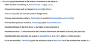 - Precision[x] gives a measure of the relative uncertainty in the value of x.