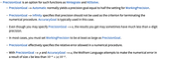 - In most cases, you must set WorkingPrecision to be at least as large as PrecisionGoal.