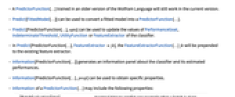- Information of a PredictorFunction[…] may include the following properties: