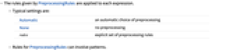 Automatic an automatic choice of preprocessing None no preprocessing rules explicit set of preprocessing rules - Rules for PreprocessingRules can involve patterns.
