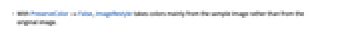 - With PreserveColor->False, ImageRestyle takes colors mainly from the sample image rather than from the original image.
