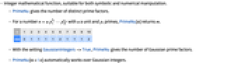 - PrimeNu[m+In] automatically works over Gaussian integers.