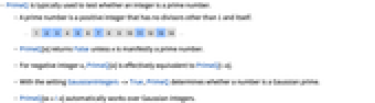 - PrimeQ[n] returns False unless n is manifestly a prime number.