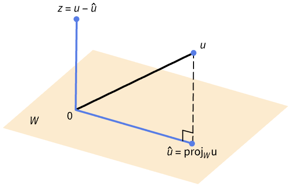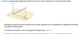 - Projection computes the orthogonal projection of a vector u onto a subspace