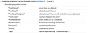 - Properties of a proof can be obtained using ProofObject[…]["prop"].