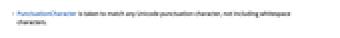 - PunctuationCharacter is taken to match any Unicode punctuation character, not including whitespace characters.