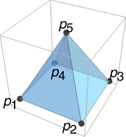 represents a filled pyramid with base {p1,…,p4} and top p5.