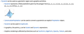 - CanonicalizePolyhedron can be used to convert a pyramid to an explicit Polyhedron object.
