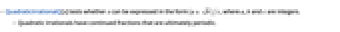 Wolfram Language. (2007). QuadraticIrrationalQ. Wolfram Language & System Documentation Center. Retrieved from https://reference.wolfram.com/language/ref/QuadraticIrrationalQ.html