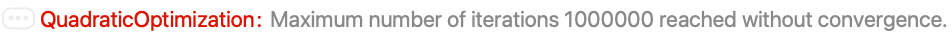Automatic choose the method automatically "COIN" COIN quadratic programming solver "SCS" SCS splitting conic solver "OSQP" OSQP operator splitting solver for quadratic problems "CSDP" CSDP semidefinite optimization solver "DSDP" DSDP semidefinite optimization solver "PolyhedralApproximation" objective epigraph is approximated using polyhedra "MOSEK" commercial MOSEK convex optimization solver "Gurobi" commercial Gurobi linear and quadratic optimization solver "Xpress" commercial Xpress linear and quadratic optimization solver