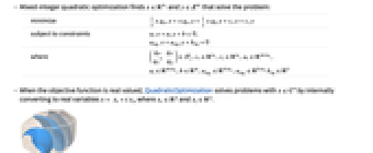 - When the objective function is real valued, QuadraticOptimization solves problems with