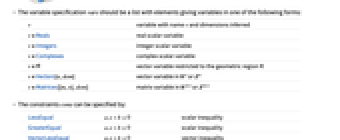 and dimensions inferredv∈Reals real scalar variable v∈Integers integer scalar variable v∈Complexes complex scalar variable v∈ℛ vector variable restricted to the geometric region
