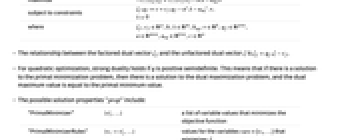 is positive semidefinite. This means that if there is a solution to the primal minimization problem, then there is a solution to the dual maximization problem, and the dual maximum value is equal to the primal minimum value. - The possible solution properties "prop" include: