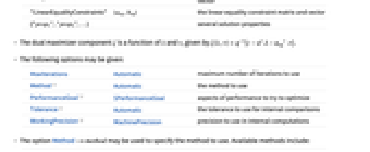 the linear equality constraint matrix and vector {"prop1","prop2",…} several solution properties - The dual maximizer component