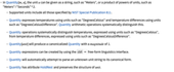 - Quantity operations systematically distinguish temperatures, expressed using units such as "DegreesCelsius", from temperature differences, expressed using units such as "DegreesCelsiusDifference".