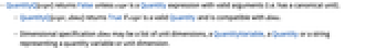 - QuantityQ[expr,dims] returns True if expr is a valid Quantity and is compatible with dims.