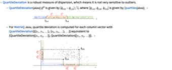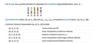 is given by Quartiles[data]. » - For MatrixQ data, quartile deviation is computed for each column vector with QuartileDeviation[{{x1,y1,…},{x2,y2,…},…}] equivalent to {QuartileDeviation[{x1,x2,…}],QuartileDeviation[{y1,y2,…}]}. »