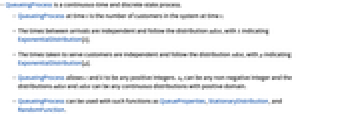 - QueueingProcess can be used with such functions as QueueProperties, StationaryDistribution, and RandomFunction.