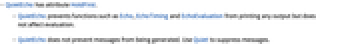 - QuietEcho prevents functions such as Echo, EchoTiming and EchoEvaluation from printing any output but does not affect evaluation.