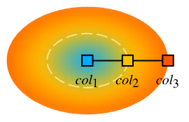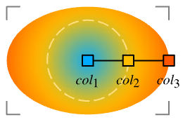- RadialGradientFilling[{col1,col2,…,coln}] specifies a progressive transition between coli using concentric circles from the center of the bounding box of a graphic object.