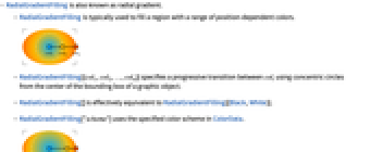 - RadialGradientFilling["scheme"] uses the specified color scheme in ColorData.
