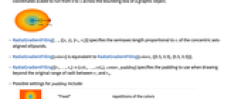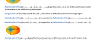 - RadialGradientFilling[…,{{x,y},{r1,r2}}] specifies the semiaxes length proportional to ri of the concentric axis-aligned ellipsoids.