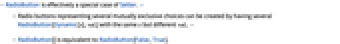 - RadioButton[] is equivalent to RadioButton[False,True].