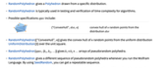 - RandomPolyhedron is typically used in testing and verification of time complexity for algorithms.