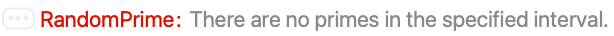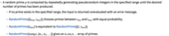 is computed by repeatedly generating pseudorandom integers in the specified range until the desired number of primes has been produced. - If no prime exists in the specified range, the input is returned unevaluated with an error message.