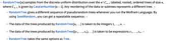 - RandomTree[n] samples from the discrete uniform distribution over the