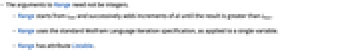 Wolfram Language. (1988). Range. Wolfram Language & System Documentation Center. Retrieved from https://reference.wolfram.com/language/ref/Range.html