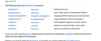 - Settings for ImageSize and Background in Rasterize override any settings for those options in expr.